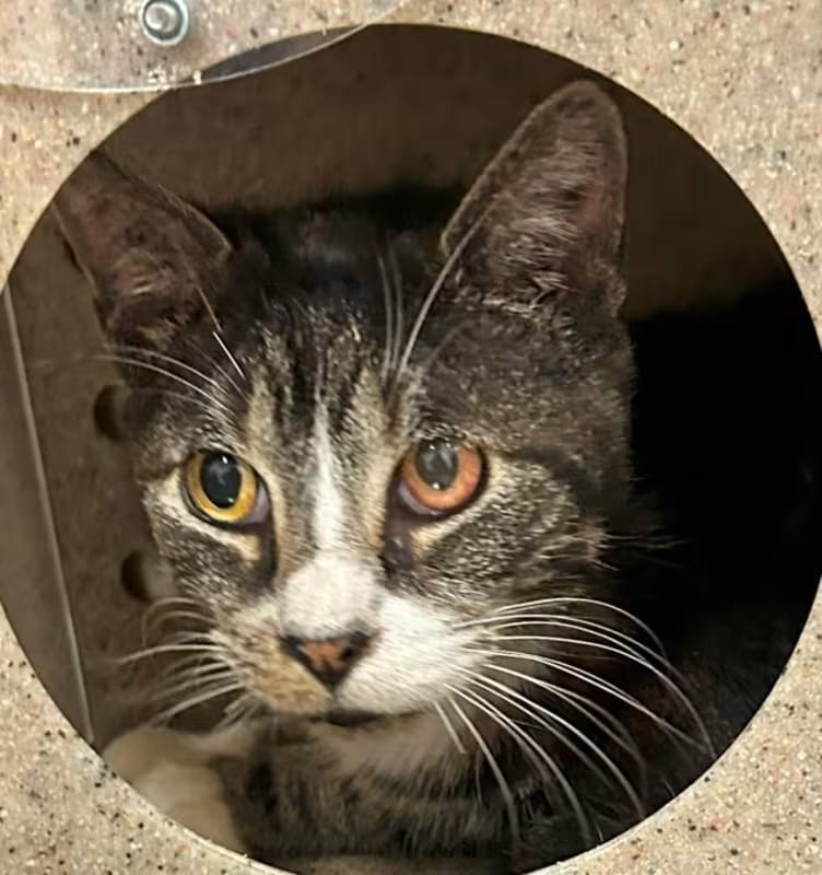 This week’s star has a snack-inspired name and a heart as big as the valley. Meet Cool Ranch Dorito—a senior domestic shorthair with a tabby-and-white coat and pure gentlemanly vibes. He was posted just two days ago and still loves a good head scratch.